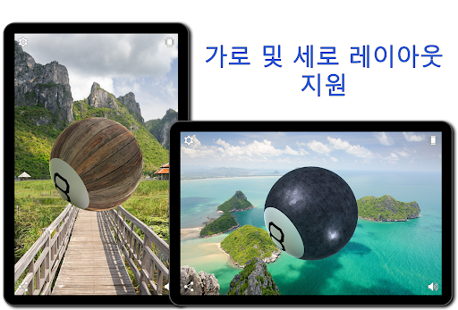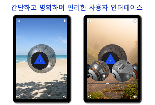 매직 볼에게 운명, 사랑, 돈이나 아침으로 뭘 먹을지에 대해 예-아니요 질문을 해보시고, 모바일 기기를 흔들거나 화면을 터치하세요.