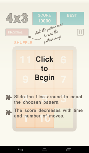 Since it is a number based sliding puzzle game different arrangement pattern is available.There are in total 8 patterns available in the puzzle: