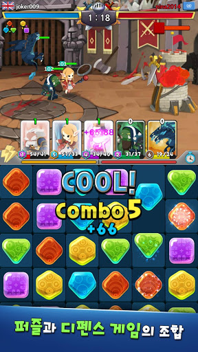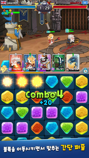 퍼즐 클래시는 블록을 매칭하고 영웅을 소환하는 디펜스 게임입니다.
