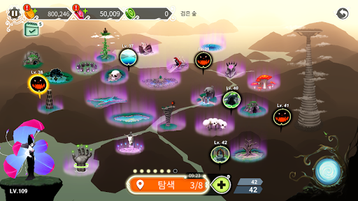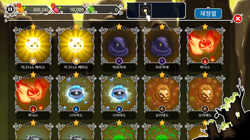 3. 정령 합성 (Merge): 검은 숲 속에 숨어있는 정령들을 찾아 수집하고 합성하여 강력한 정령왕을 만드세요.