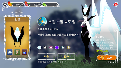 4. 레벨 업하고 장비를 만들어 마녀를 성장시키세요.