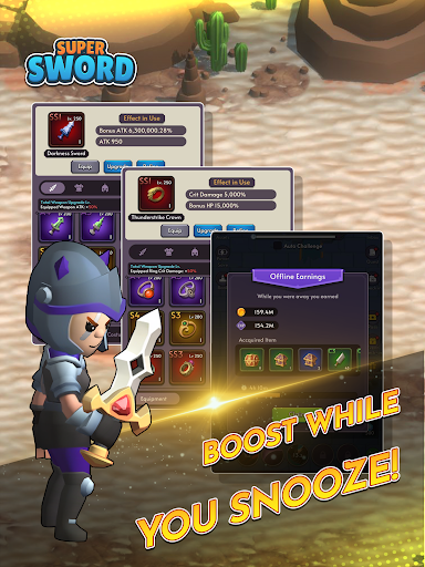 "Super Sword- 유휴 RPG";검을 스릴과 유휴 게임 플레이의 쉽게 결합한 서사적 모험입니다.강력한 적, 고대 보물 및 전설적인 영웅들과 함께 매혹적인 환상의 세계에 몰입하십시오.선택한 사람으로서, 전설적인 슈퍼 소드를 휘두르는 것은 당신의 운명입니다.무성한 숲에서 위험한 던전 및 우뚝 솟은 산에 이르기까지 다양한 풍경을 여행하면서 캐릭터를 업그레이드하고 기술을 연마하고 충성스러운 동맹국을 모으십시오.세상의 운명은 당신의 손에 달려 있습니다!