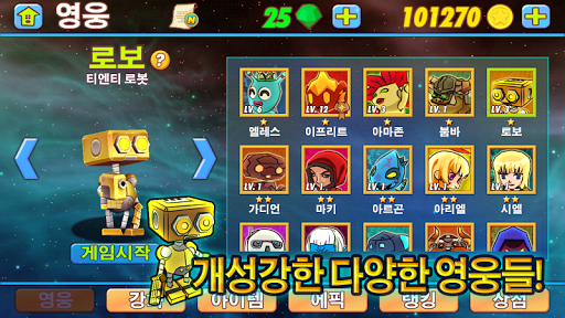 - 조이스틱으로 영웅을 상하좌우 자유자재로 움직인다.