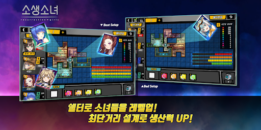 - 다양한 룸을 배치해 소녀들을 생산하고 업그레이드 하세요.