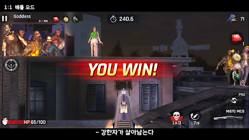 훌륭한 타격감을 경험 하실 수 있습니다. 지금 바로 좀비와의 전투에 대비하세요! 또한 좀비 PVP 모드를 통해 유저끼리의 대결을 해보세요