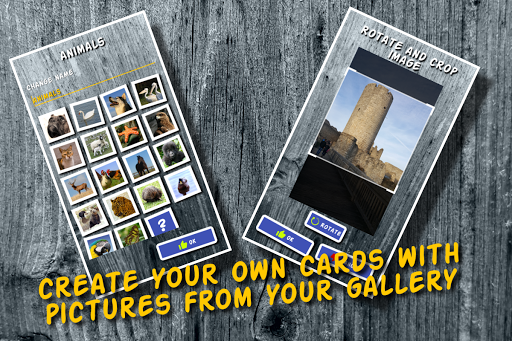 - Create your own card sets with pictures from your gallery