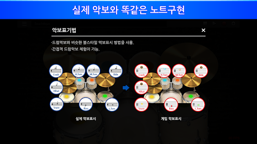 기본적인 드럼 연주법을 익히거나 리듬게임을 통한 트레이닝도 할 수 있습니다.