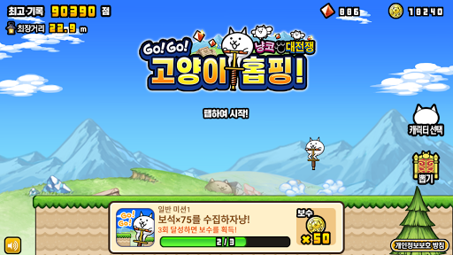 조작 가능한 캐릭터는 고양이 홉핑 이외에도 『냥코대전쟁』의 고양이들이 등장합니다.