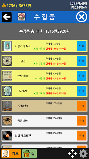 - 자산(수집품,부동산,건축물,기업)의 가치는 사둔 상태로 둘 경우 무제한 상승합니다.