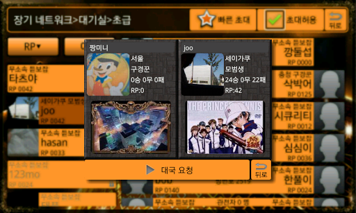 빠른 초대로 또는 원하는 유저에게 대국을 신청해서 즐겨보세요