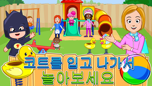 저희 게임은 마이 타운 주변의 가상 공간들로 구성되어 있습니다. 경찰서, 가정집, 병원, 해변 그리고 아기들을 위한 최신 보육원이 있습니다. 저희는 어린이들이 가상 놀이를 할 수 있는 가상 세계를 만들어줍니다. 광고가 없고 응용 프로그램 내 구입이 없습니다!
