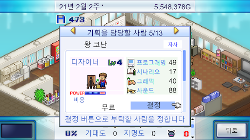 직원이 성장하면 개발할 수 있는 게임 장르와 내용이 추가됩니다. 인기 있는 조합을 발견해 새로운 게임기로 만들어요! 프로그래머나 사운드 크리에이터 등, 게임과 관련된 직업 시스템도 등장합니다.