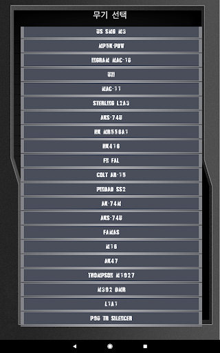 - 기관총 (Ingram Mak-10, Sterling L2AZ, M134 Minigun);