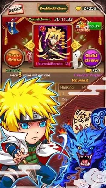 100+ popular shinobis and Ninja hero to be recruited and trained! You will be the most powerful Ninja fighter ever and keep training to become the strongest Hokage! GO!Recruit and build the legendary team.