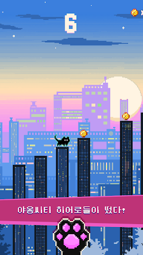 더 멀리, 더 빨리 점프해보자! 동전을 모아서 더 많은 야옹 히어로들을 모아줘!