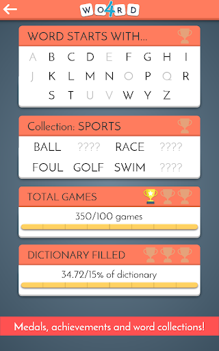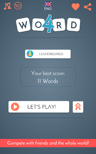 게임, 집, 놀이 ... 네 글자 단어입니다.시간이 다 떨어지기 전에 얼마나 많은 단어를 찾고 함께 가고 함께 할 수 있습니까?당신의 결과를 전 세계에서 친구와 선수와 비교하십시오!통계로 진행 상황을 추적하고 특별한 업적과 단어 컬렉션을위한 메달을 획득하십시오.