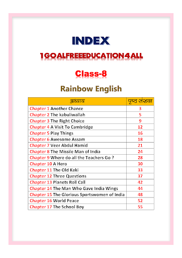 Contents of the 8th Class Rainbow English Solution UP-Board
