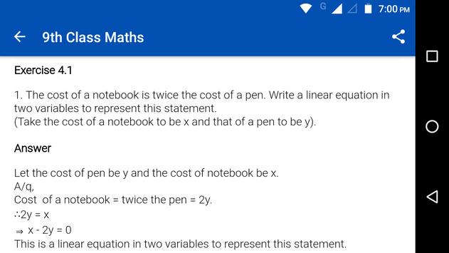 9th Class Maths - app is specially designed for the NCERT class 9 students to help them prepare for their examinations. This app having NCERT syllabus Maths Class 9th solutions can be useful in two scenarios - To verify your answer after you solve the exercise problems and other one is Check the solution when you stuck.