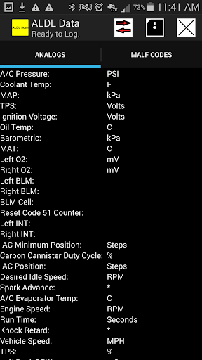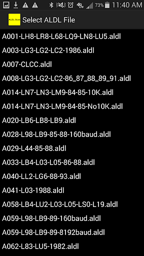 ALDL Scan adalah aplikasi untuk melihat data ALDL dari tahun 1995 dan kenderaan GM yang lebih tua.Ia dapat digunakan untuk melihat parameter Analog, kod Kerusakan, atau mengatur ulang ECM kenderaan.ALDL Scan juga menyediakan rakaman data ALDL ke peranti Android pengguna.ALDL Scan mesti digunakan bersama dengan penyesuai kereta Bluetooth dari 1320 Electronics.ALDL Scan tidak serasi dengan penyesuai kereta Bluetooth yang lain.