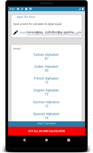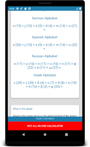 Anda boleh mengira angka numerologi sama dengan aplikasi percuma ini untuk ilmu mistik, kad tarot, nyanyian zodiak, horoskop, astrologi, carta kelahiran. Hanya terdapat 8 sokongan huruf pada ketika ini. Ini adalah abjad Inggeris, abjad Perancis, abjad Turki, abjad Arab, abjad Rusia, abjad Jerman, abjad Sepanyol dan abjad Yunani. Huruf baru akan ditambah tidak lama lagi. Aplikasi ini boleh digunakan untuk ilmu Tarot, Astrologi atau mistik. Laporkan sebarang bug atau salah terjemahan melalui e-mel. Terima kasih kerana memuat turun.