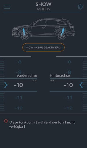 Anda boleh menggunakan udara anda Penggantungan, semasa anda beroperasi mengenai Audi MMI, ia hanya mengenai nilai perubahan yang dikehendaki lebih mendalam atau lebih tinggi.