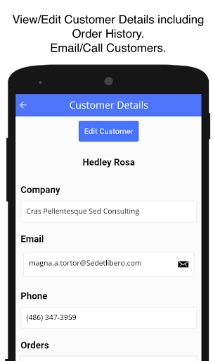 Pelanggan: Lihat Senarai Pelanggan (Terkini Pertama) atau Bor ke Pelanggan tertentu untuk melihat butiran hubungan, pesanan masa lalu.Anda boleh mencari pelanggan tertentu mengikut nama atau ID e -mel.Di samping itu, anda boleh menghantar e -mel kepada pelanggan melalui aplikasi.(Produk dalam aplikasinya: langganan $ 0.99/bulan)