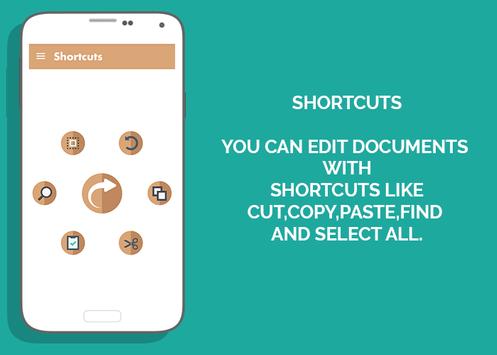 You can edit documents with shortcuts like Cut,Copy,Paste,Find and Select All.
