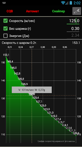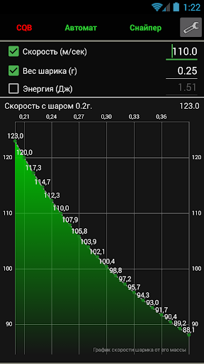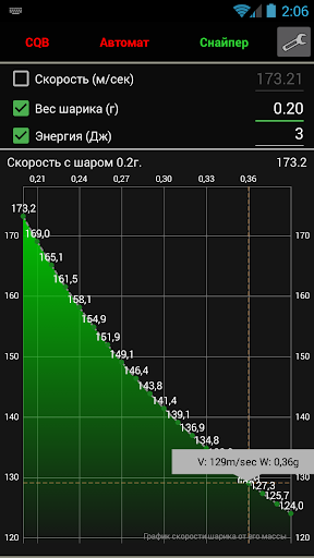 Permohonan yang selesa ini membantu mengira halaju peluru, berat dan tenaga untuk pistol airsoft.Mempunyai carta interaktif pelet halaju mengikut berat.Membantu untuk mengetahui sama ada pistol sesuai untuk CQB, senapang tipikal atau penembak curi (mengikut had pentadbiran).Sesuai untuk pusingan 6mm (.246) bb ammo.