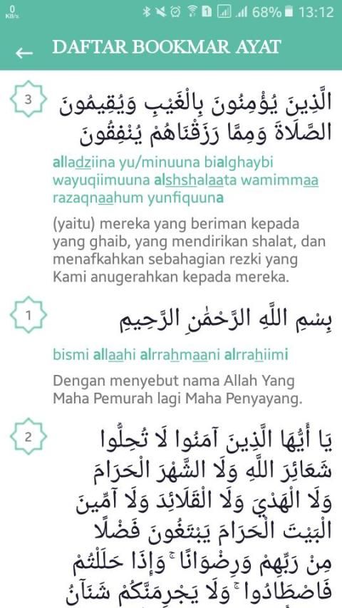 Di aplikasi ini ada fitur untuk menyimpan setiap ayat alqurannya loh yaitu fitur bookmark ayat,