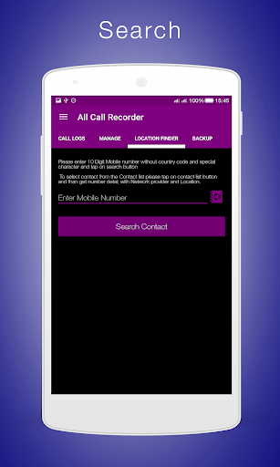 ✆ Search call mobile number using this call recorder so just enter 10 digit mobile number and search the detail of mobile number.