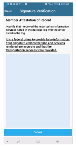 Aplikasi Pemandu Mudah Alih untuk Semua Perisian Trans, penghantaran, penjadualan dan perisian penagihan untuk Pengangkutan Perubatan Bukan Kecemasan (NEMT Provider Market) dan Latihan dan Habilitasi Hari (DT&H Provider Markets).Aplikasi All Trans memuat turun jadual perjalanan atau pemandu untuk memproses perjalanan yang dijadualkan secara elektronik.Pemandu mempunyai keupayaan untuk menangkap masa pengambilan, masa turun, tandatangan elektronik.Penjejakan GPS, pemberitahuan tolak dan keupayaan luar talian disertakan membolehkan penghantar untuk menangani penambahan pada hari yang sama dengan berkesan atau mempunyai keyakinan bahawa aktiviti pada akhirnya (kemas kini pemandu, batalkan perjalanan dll) bahawa maklumat akan didorong kepada pemandu.