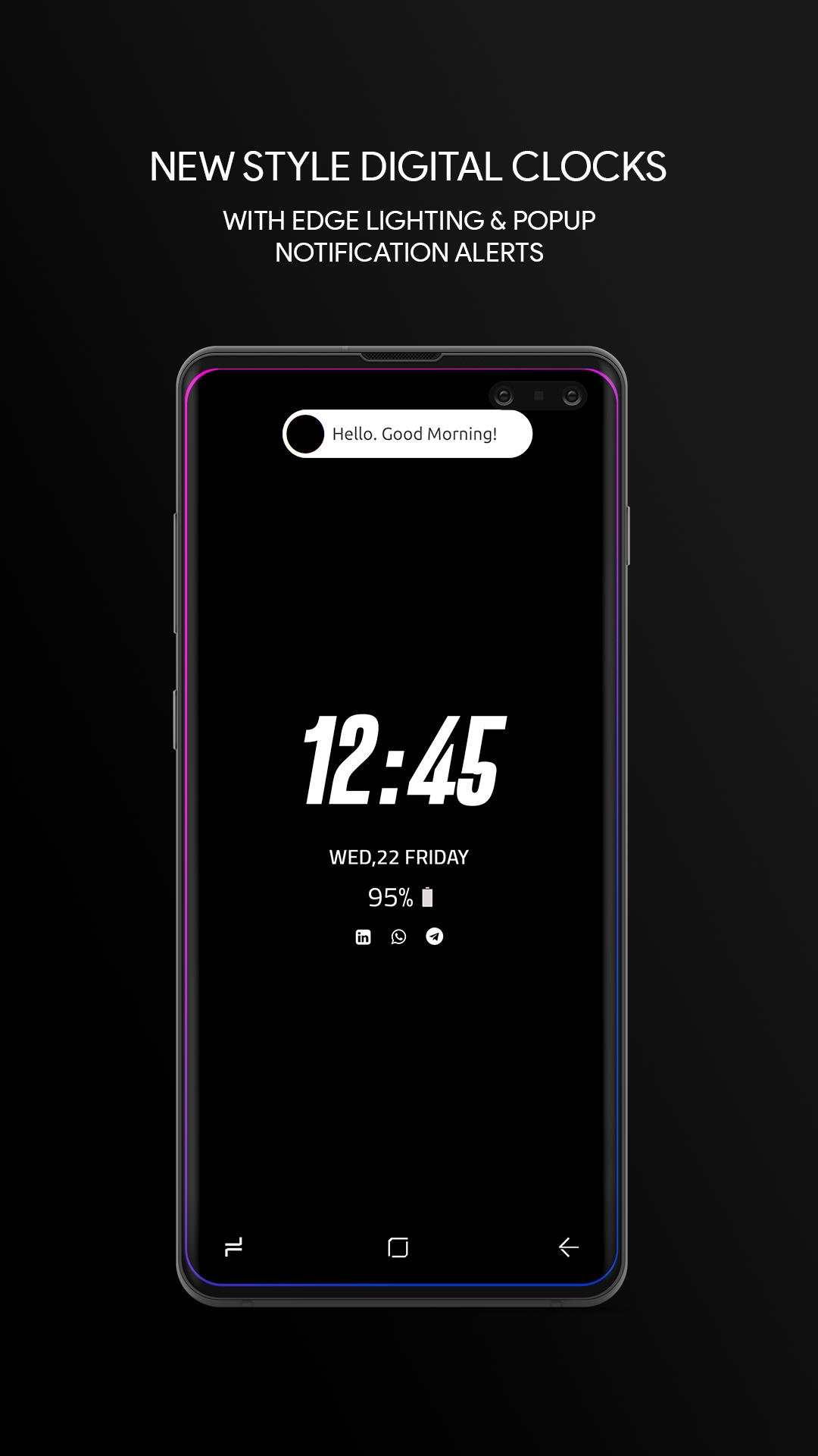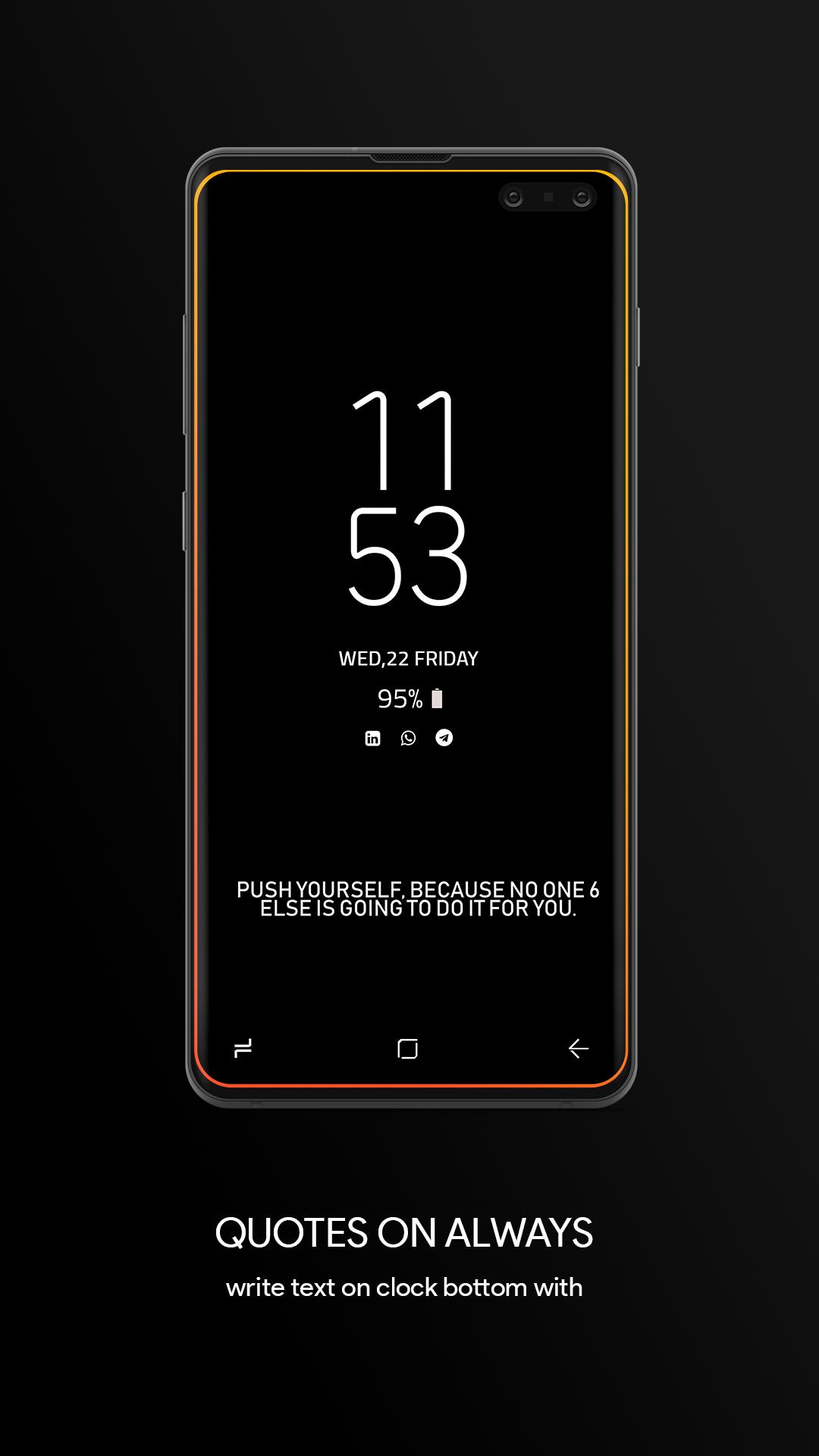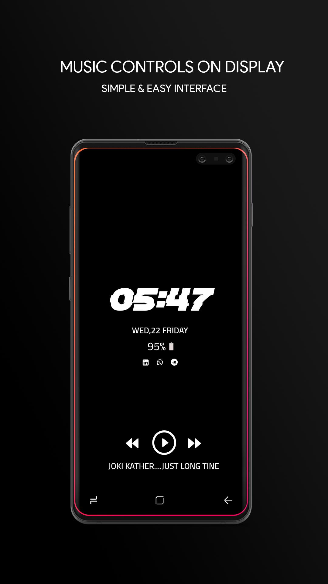 It is a new cool way to maximize your screen on time by setting up the black background on your AMOLED home screen. Always on Display Digital Clock, Analog Clock, Edge Clock, Live Night Clock, Popup Notification Alert, Rounded Corners, Custom Picture Clock ,AMOLED Wallpapers & Edge Lighting.