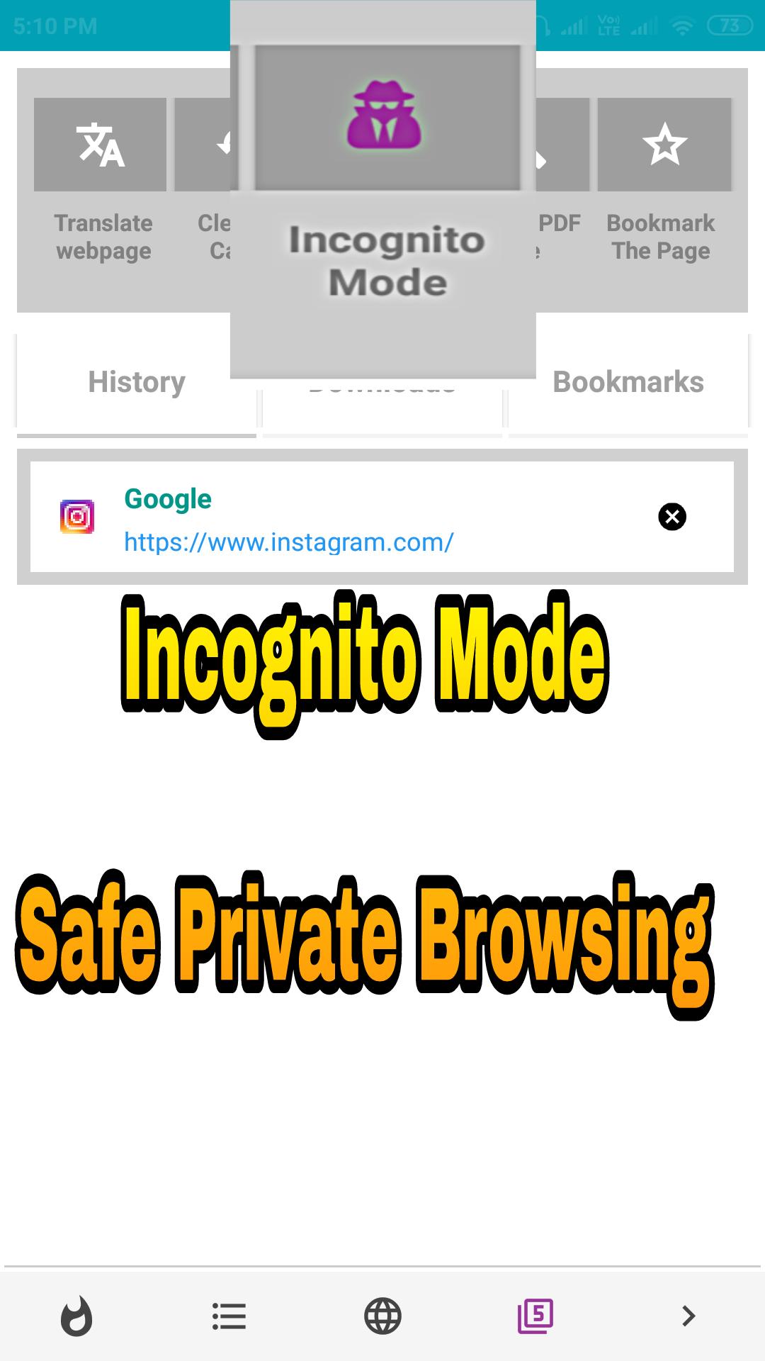 Incognito Mode makes your browsing experience perfectly private without leaving any history, cookies, cache, etc. You are 100 % safe with your personal data.