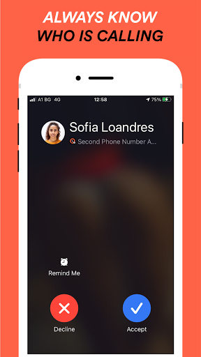Tambah nombor telefon kedua hampir di dalam aplikasi kami dan mula memanggil teks melalui WiFi dari mana -mana sahaja. Hantar dan terima panggilan, SMS dan MMS secara peribadi melalui nombor kedua yang berasal dari kami, Kanada atau UK. > Untuk setiap perbualan, anda diberikan nombor telefon kedua percuma (percubaan percuma adalah sah sehingga anda membeli nombor anda sendiri) yang sah untuk teks peribadi dan panggilan perbualan sahaja.
