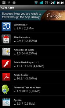 Easy app share. ApkShare allows you to copy or backup your applications to your SD card or to send it to a friend !