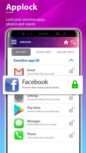 Locker Aplikasi Pintar Percuma Mengaktifkan perlindungan privasi dengan menyokong mengunci aplikasi anda dengan kata laluan, corak, atau cap jari. Kunci aplikasi yang terbaik meningkatkan keselamatan aplikasi selain fungsi kunci biasa Android.