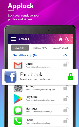 Kunci aplikasi lain: Semua aplikasi lain yang berjalan pada telefon atau tablet Android anda boleh dikunci oleh kunci aplikasi.