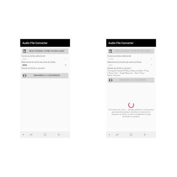 This application allows you to convert audio format files such as: - AAC - MP3 - M4A - WMA - WAV - FLAC in different formats of the same type.
