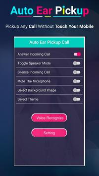Auto Ear Pickup Caller ID it's easy and simple to use. this app allows to attend call whenever you are busy and you have don't time to touch your cell.with this just place you cell near your ear and it will pickup your call direct without touch.