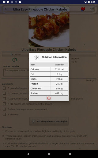 Resipi disediakan dengan nilai pemakanan mereka, kalori