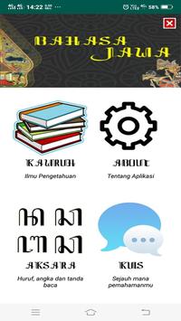 Pada aplikasi "Belajar Bahasa Jawa" ini terdapat 4 menu yaitu