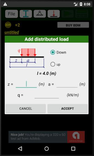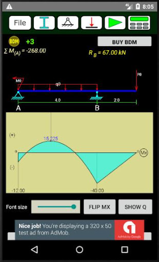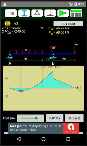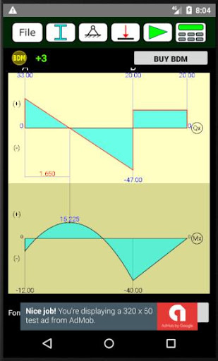 This app draw Shear forces and bending moment diagrams for: Simple beam Beam with an overhang Cantilever beam Determine the maximum bending moment value and calculate the stress value.