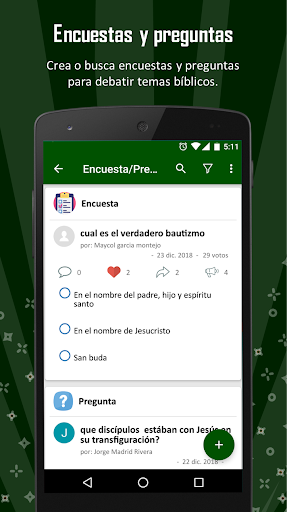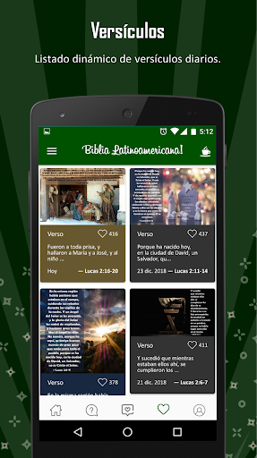 The Catholic Bible Latin American Edition, kini boleh didapati di peranti Android anda, muat turun Latin American Bible dan berunding dengan apa-apa, buku, bab dan ayat yang anda inginkan tanpa perlu mempunyai sambungan internet, ia membolehkan anda berkongsi ayat-ayat, melalui Facebook, WhatsApp , Mel, dsb. dan apa-apa aplikasi yang dipasang pada peranti anda.