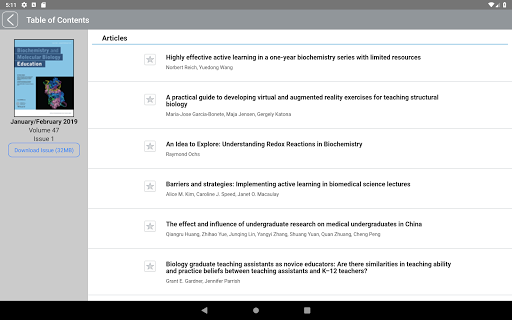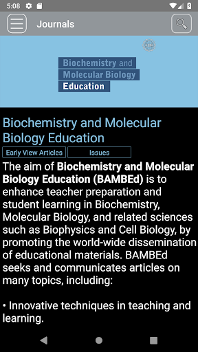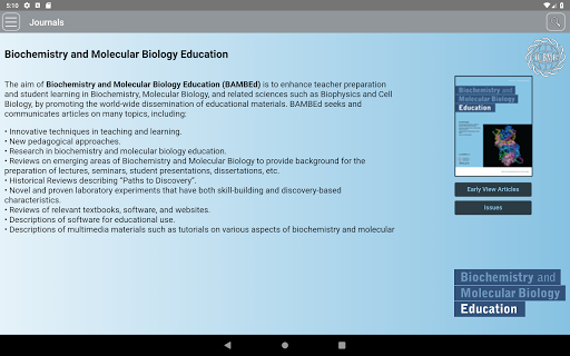 A leading bioechemistry journal is now available on your mobile devices. “Biochemistry and Molecular Biology Education” brings you a stimulating, high-impact mixture of Reviews, Articles, Discussion Forums, and more. Enjoy an entirely new browsing and reading experience, and keep up to date with the most important developments in biochemistry and molecular biology research even faster: