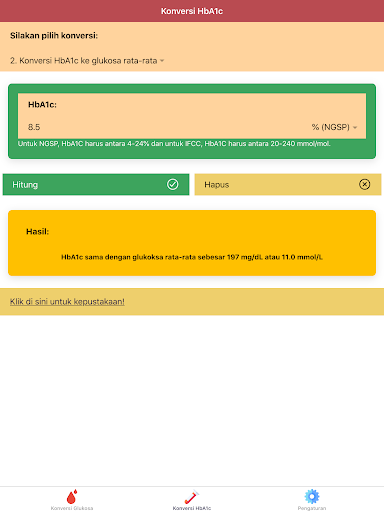 🔸 Tukar tahap glukosa darah dari MG / DL ke MMOL / L dan Naib versa. 🔸 Tukar tahap glukosa darah ke HbA1c dan sebaliknya.