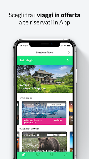 Se non hai ancora prenotato la tua prossima esperienza di viaggio, questa app ti darà più di una tentazione. A tua disposizione una selezione di offerte di viaggio a prezzi dedicati. Impossibile trovarle altrove. Prenota facilmente con un tap la tua esperienza ed entra subito nel mondo Blueberry Travel fatto di scoperte, esperienze, viaggi, musica, buon cibo ed emozioni.