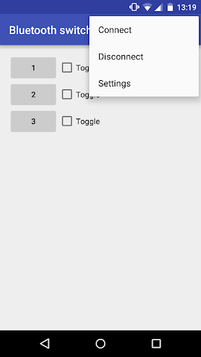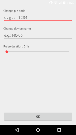 With this app you can control the three relays on the Elektor Bluetooth relay board. You can pulse or toggle the relays with a changable pulse time and change the name and pin code of the bluetooth module.
