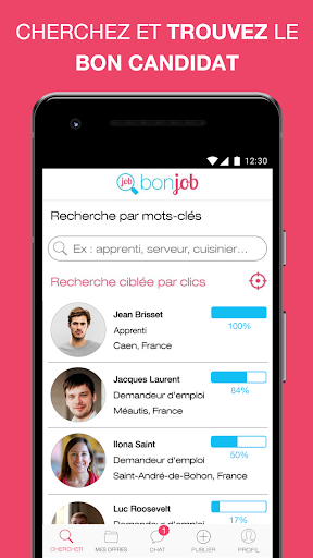 BonJob c'est le Bon candidat pour le Bon emploi. Téléchargez BonJob dès maintenant !