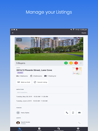 Aplikasi eksklusif untuk profesional hartanah menggunakan kotak dadu untuk menguruskan pembeli, penilaian, tugas dan pelantikan, melaporkan kepada penjual mereka dan menghantar kontrak dan risalah kepada pembeli semua semasa keluar dari penyenaraian jalan dan menjual harta.