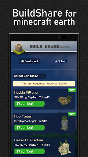 Disclaimer: This app is an addon and not a game. 'BuildShare for Minecraft Earth' is not associated, approved or developed by Mojang in any way. It's an unofficial app for Minecraft Earth. The Minecraft Earth Beta is also still in development, and so features are subject to change.